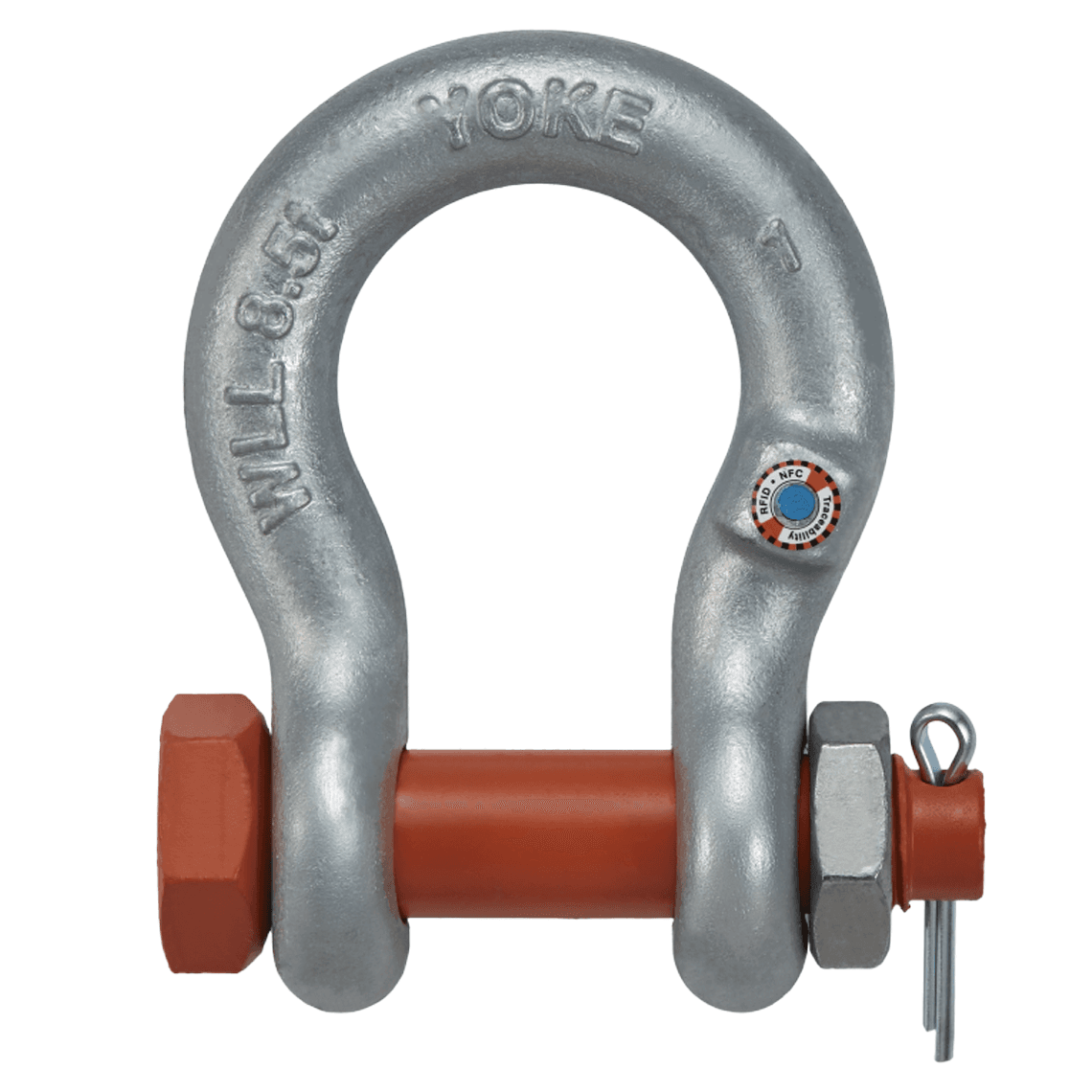 For the secure connection of lifting slings in lifting and securing systems, ideal for offshore, marine, and heavy-duty applications, maximum strength and corrosion protection, hot-dip galvanized, RFID-enabled.